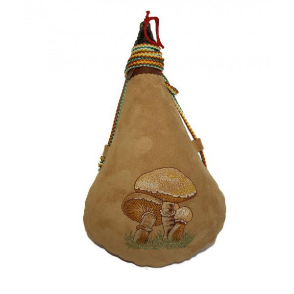 Bota de vino, de piel de ternera bordada, con interior de latex. Diseño seta.