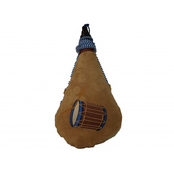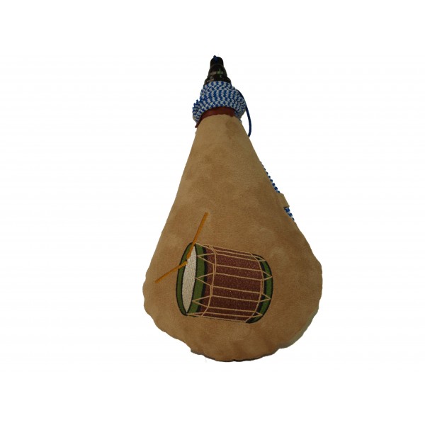Bota de vino, de piel de ternera bordada, con interior de latex. Diseño de tambor.
